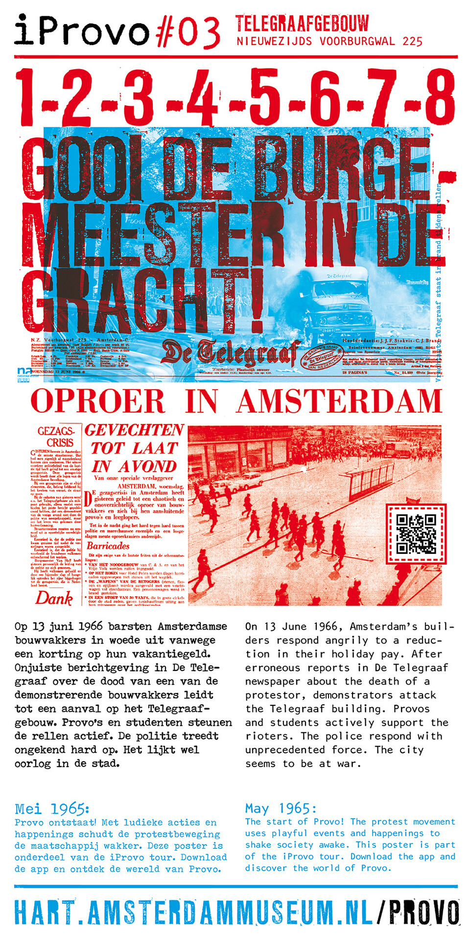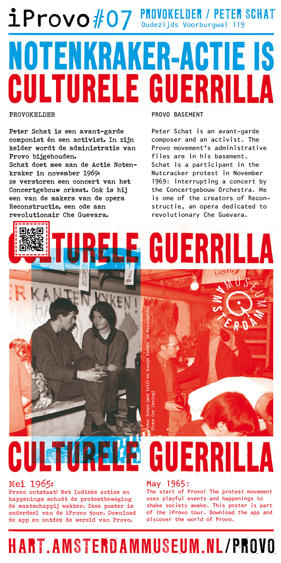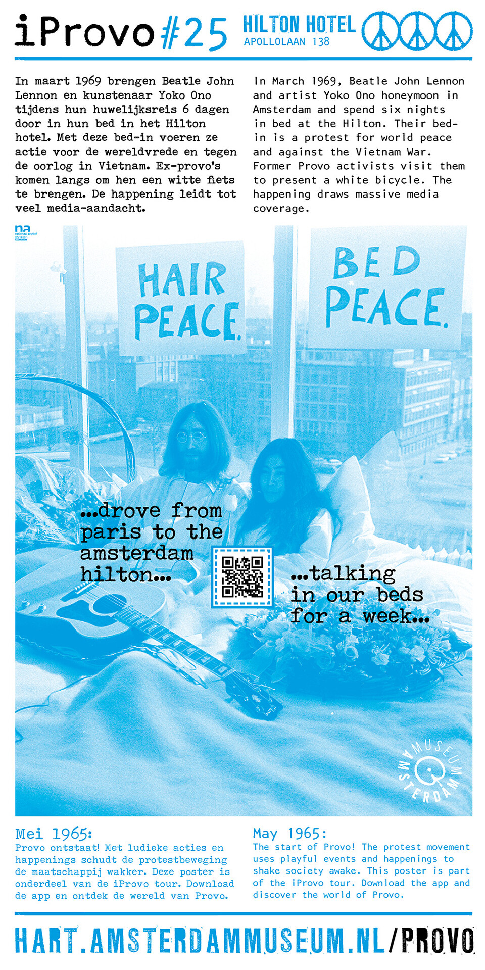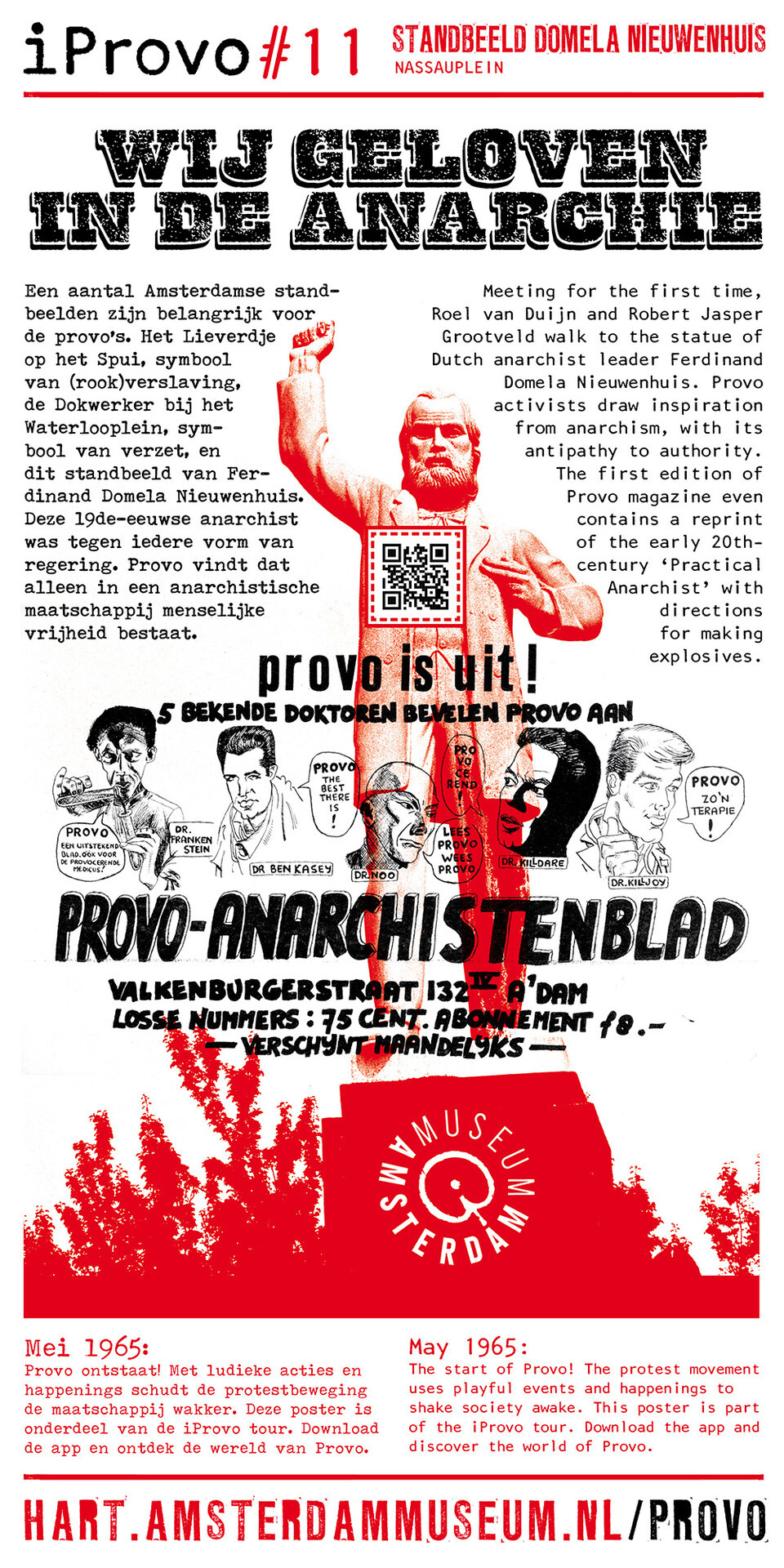 Celebrating the 50th anniversary of Provo the Amsterdam Museum made a bike tour through Amsterdam with 30 essential spots to learn more about the Provo movement. These posters were the tangible pieces and marks of the tour and with the QR code on the poster you were able to receive more information via the iProvo app.