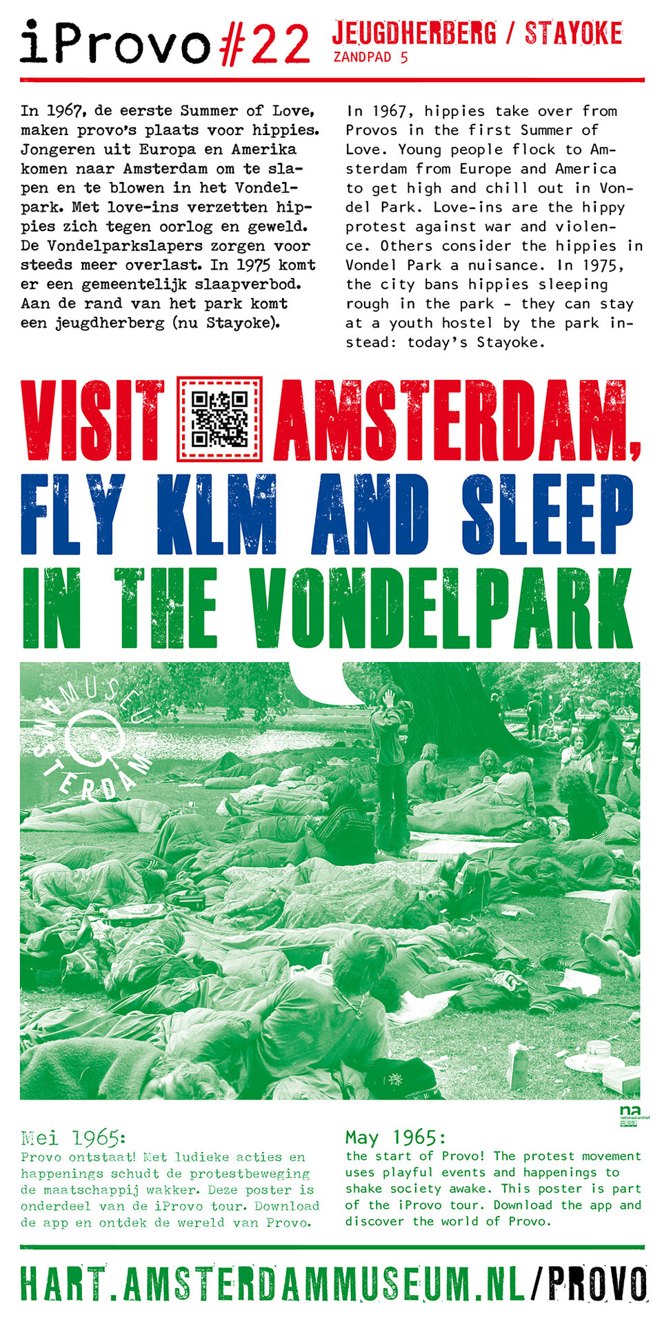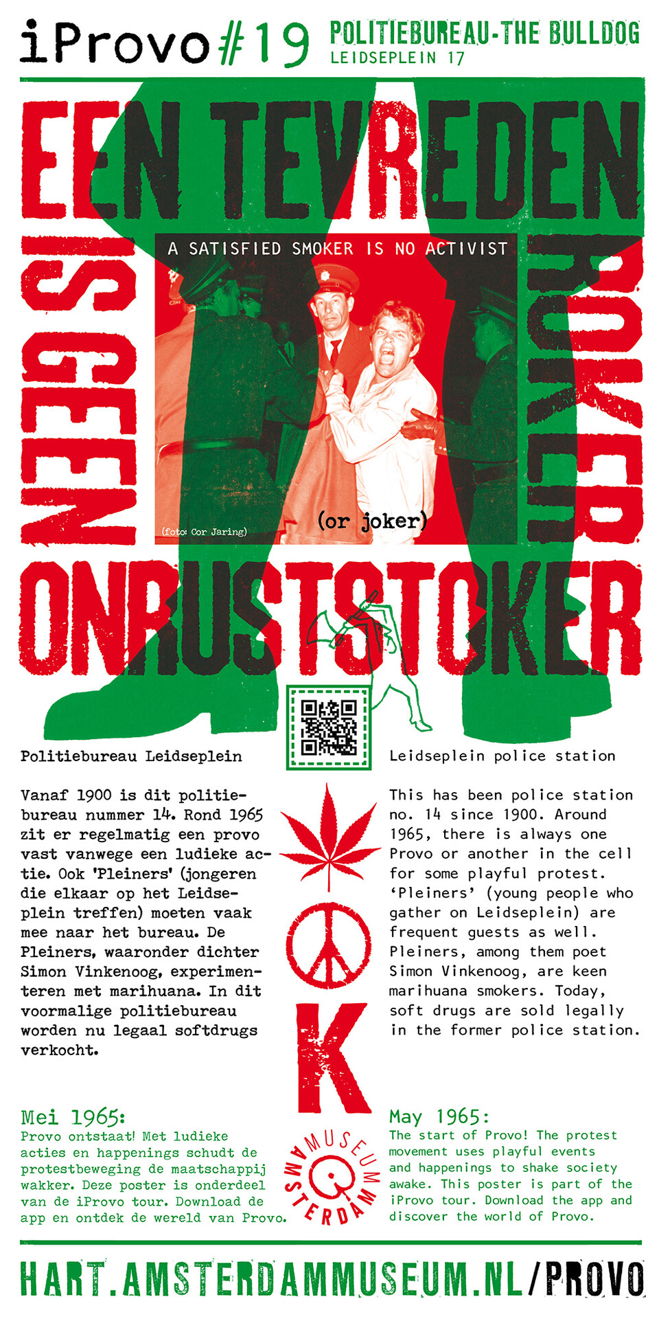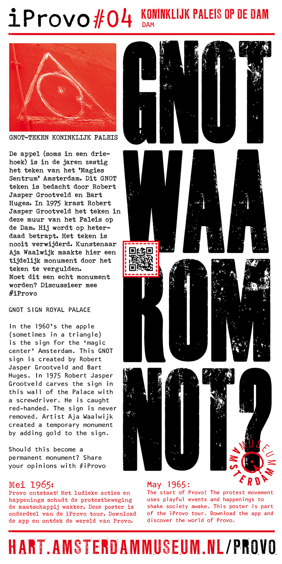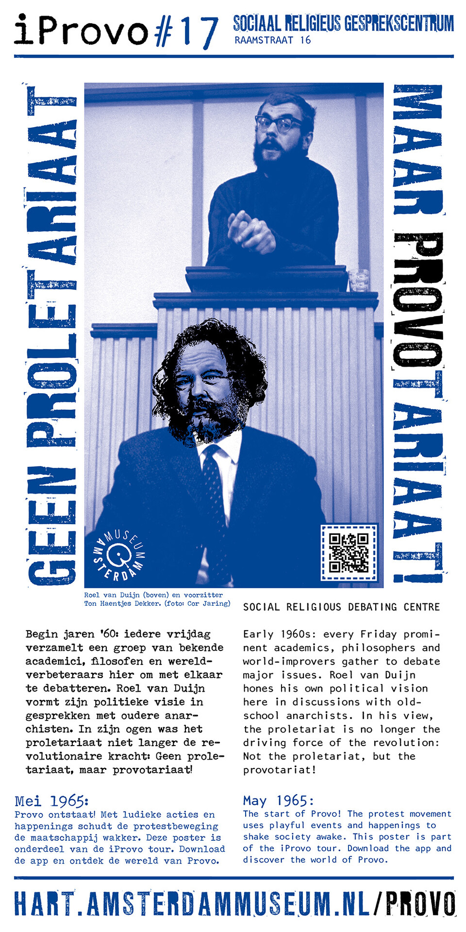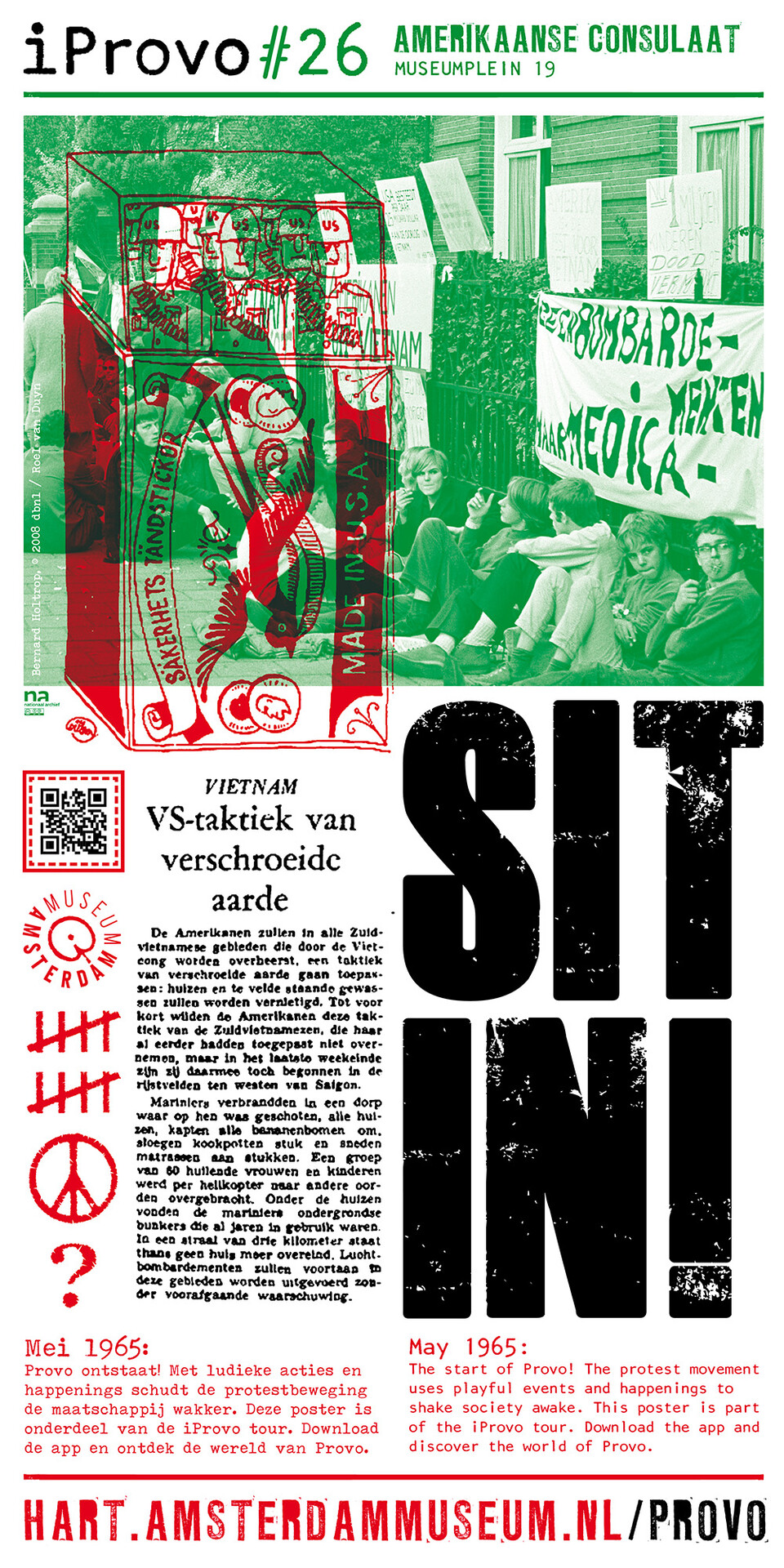 Celebrating the 50th anniversary of Provo the Amsterdam Museum made a bike tour through Amsterdam with 30 essential spots to learn more about the Provo movement. These posters were the tangible pieces and marks of the tour and with the QR code on the poster you were able to receive more information via the iProvo app.