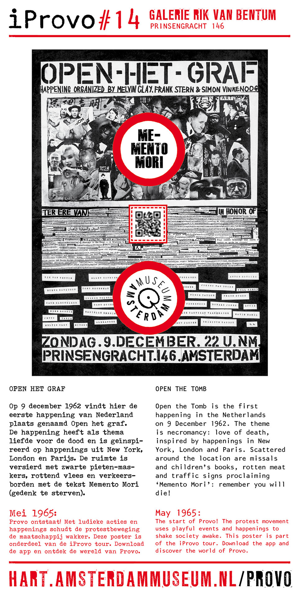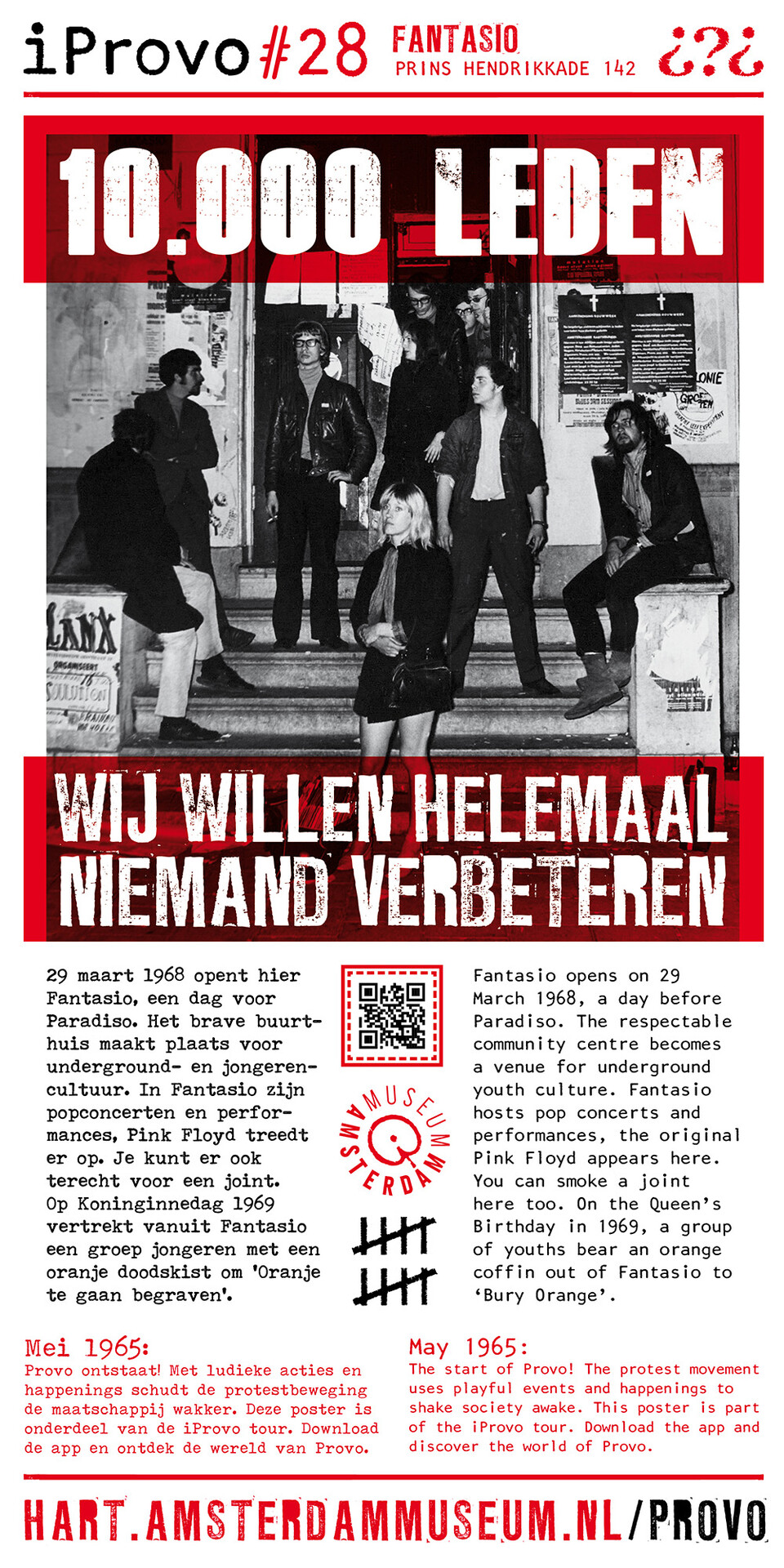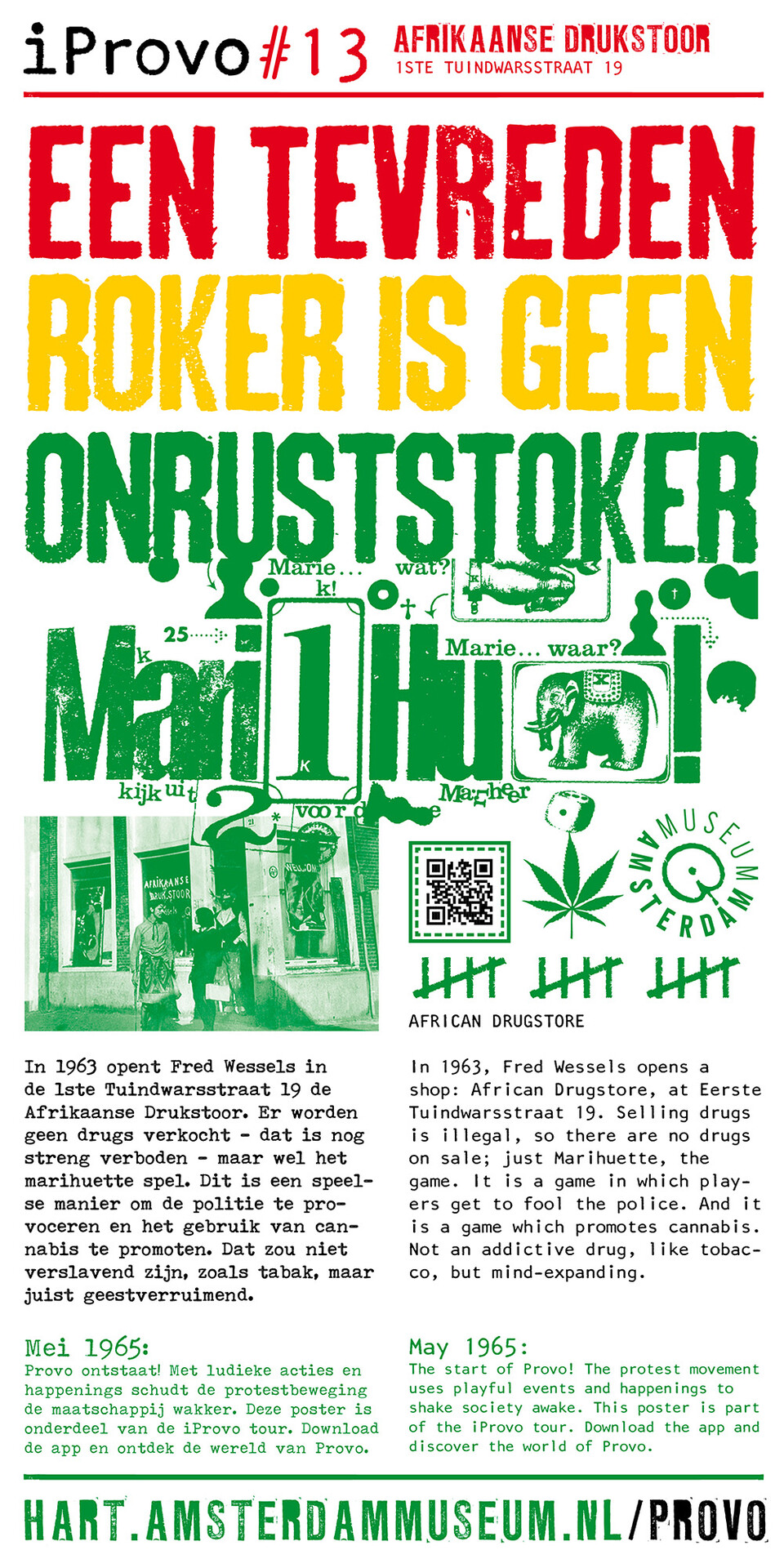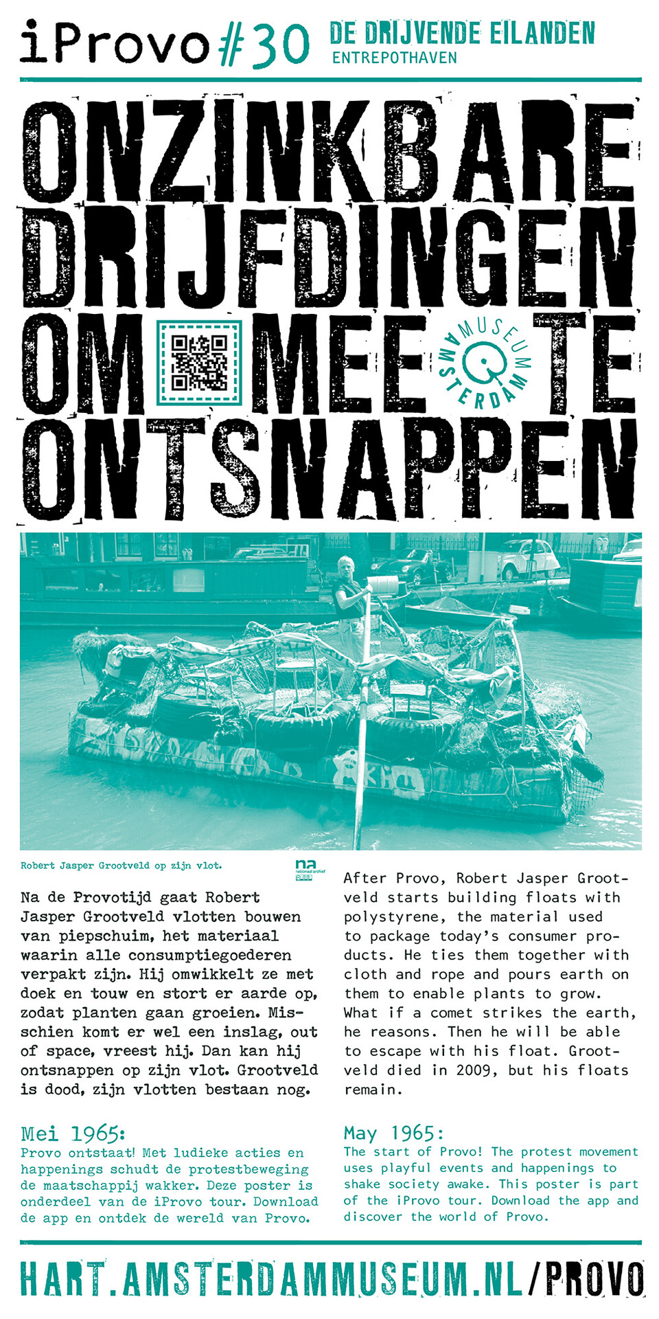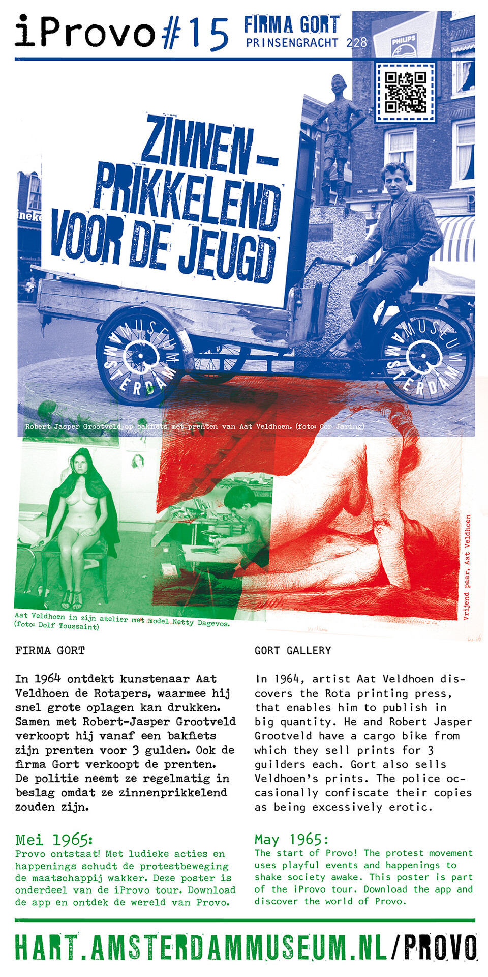 Celebrating the 50th anniversary of Provo the Amsterdam Museum made a bike tour through Amsterdam with 30 essential spots to learn more about the Provo movement. These posters were the tangible pieces and marks of the tour and with the QR code on the poster you were able to receive more information via the iProvo app.