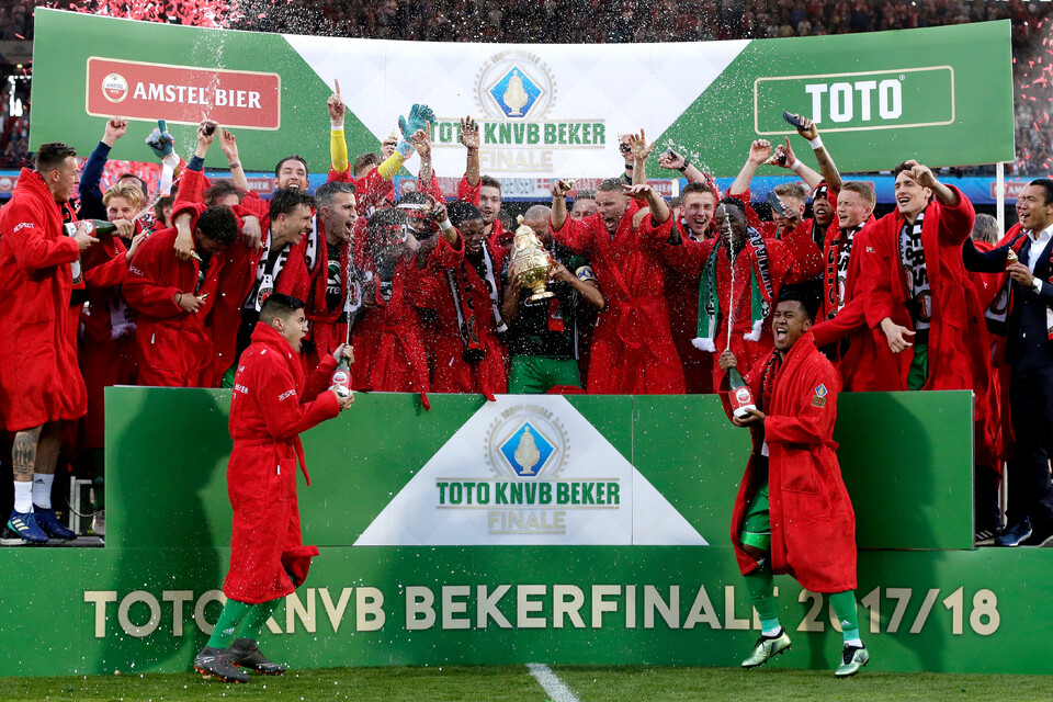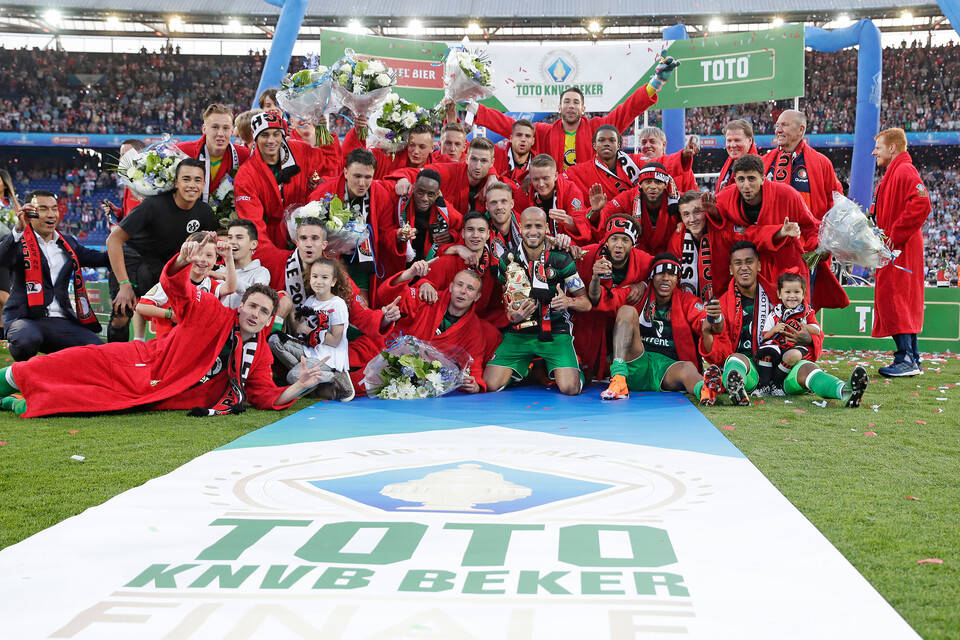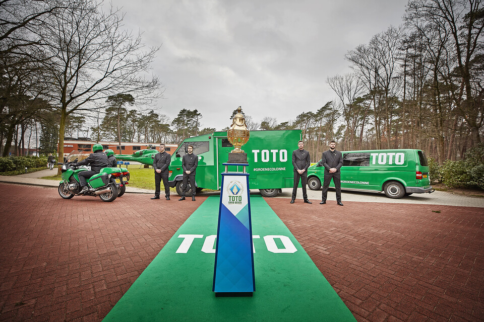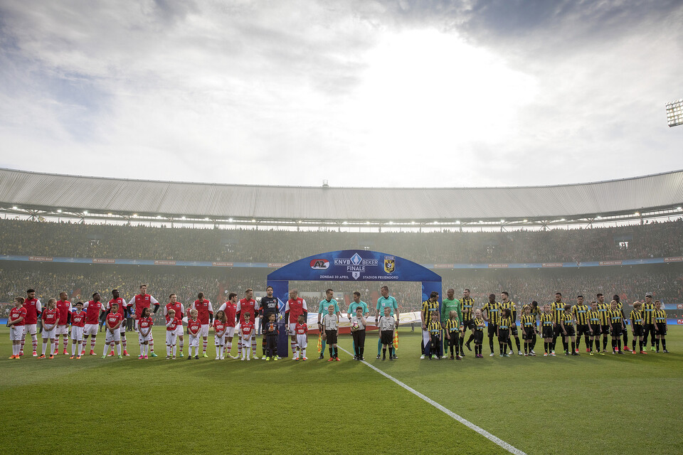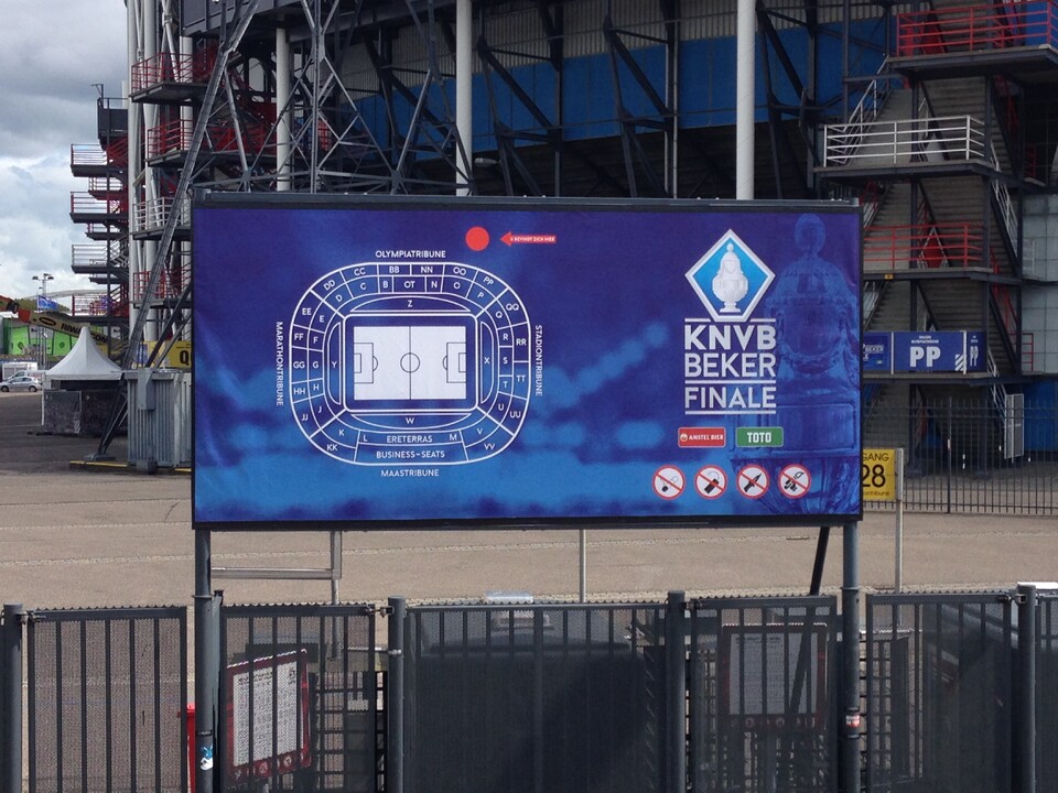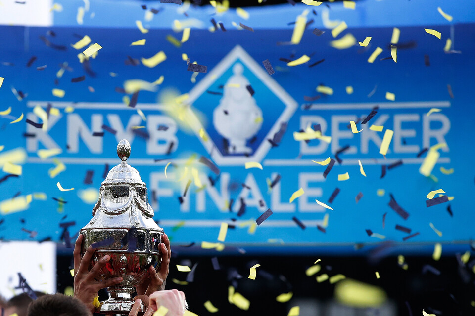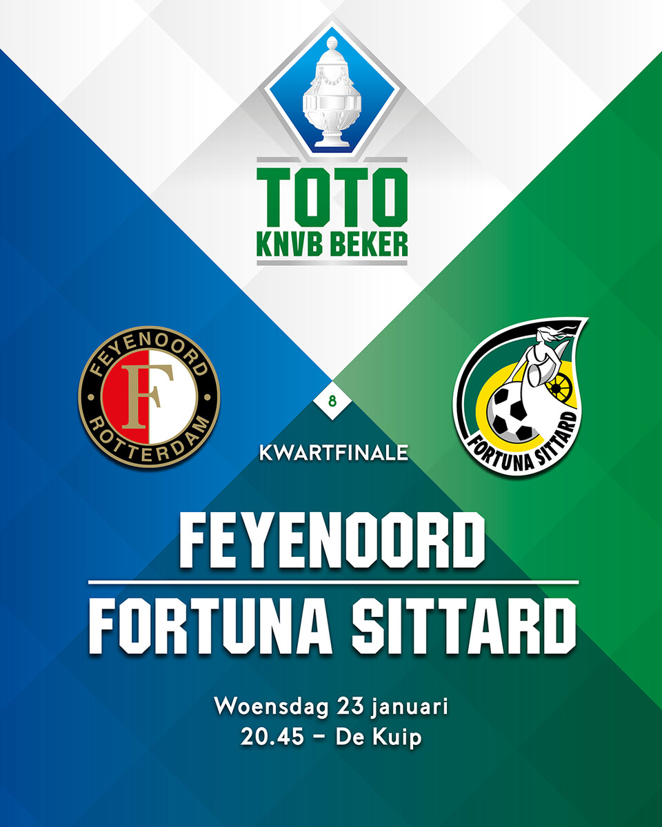 The design lasted for one season as in 2018 a new sponsor was added to the name. During the 100 years jubilee season 2017-2018 another identity was introduced as the tournament was called the TOTO KNVB Beker. The anniversary was celebrated with a golden cup. We changed all the backdrops and introduced a pattern print to the design. This all meant that the project lasted for two years before the final identity was up and running. Starting off with the clean blue and silver, transferring into the TOTO initiation of green into the design, continuing with a golden cup during the anniversary and finally working with a somewhat compromising blue, silver, green at this point.