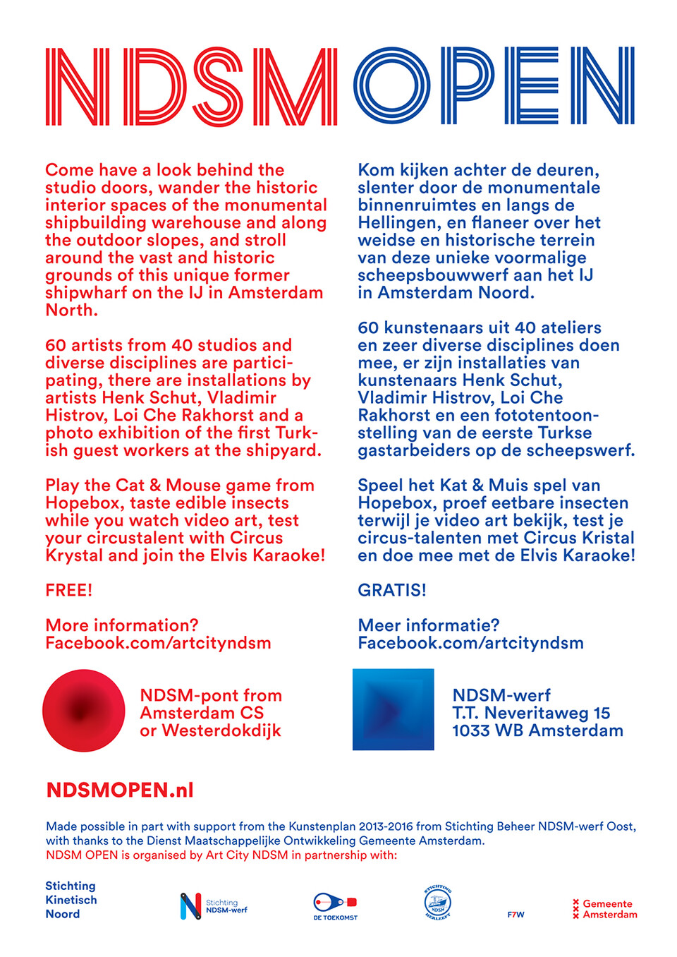 NDSM Open is a yearly event where most artists of the NDSM have an open house to the public.