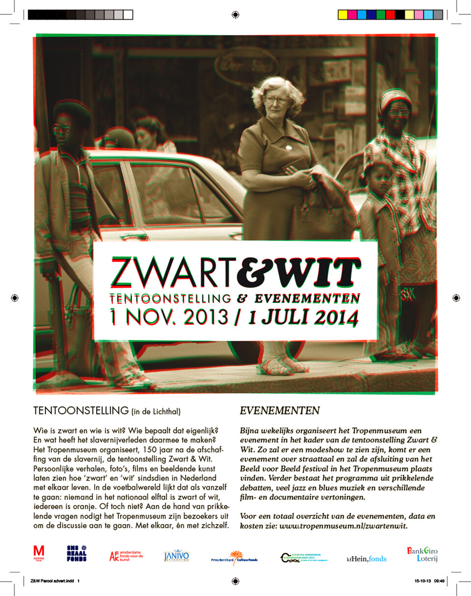 Who is black and who is white? Who actually determines this? And what does the slavery past have to do with this? 150 years after the abolition of slavery, the Tropenmuseum will invite visitors to engage in discussion, with each other and with themselves in the exhibition Black & White.