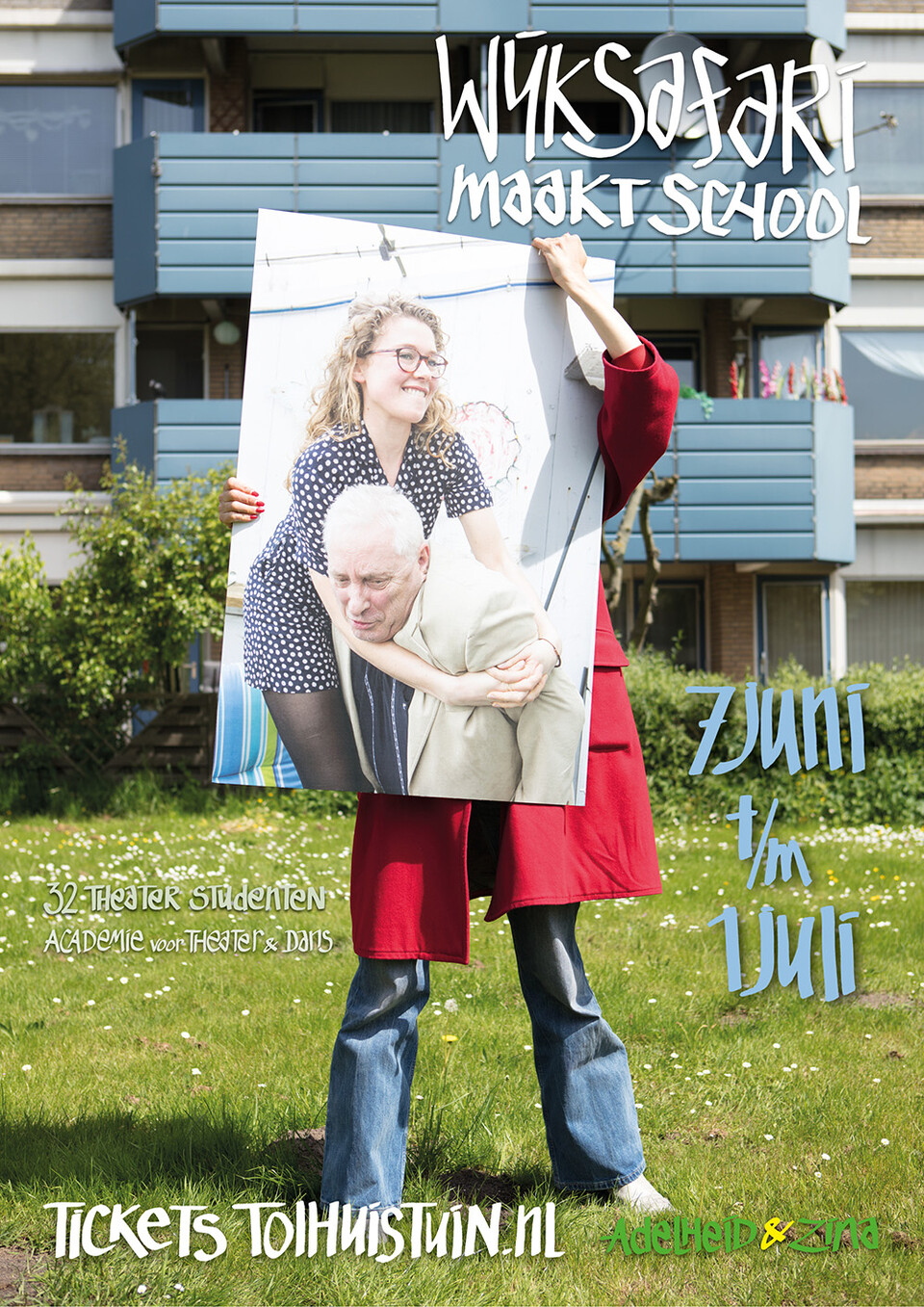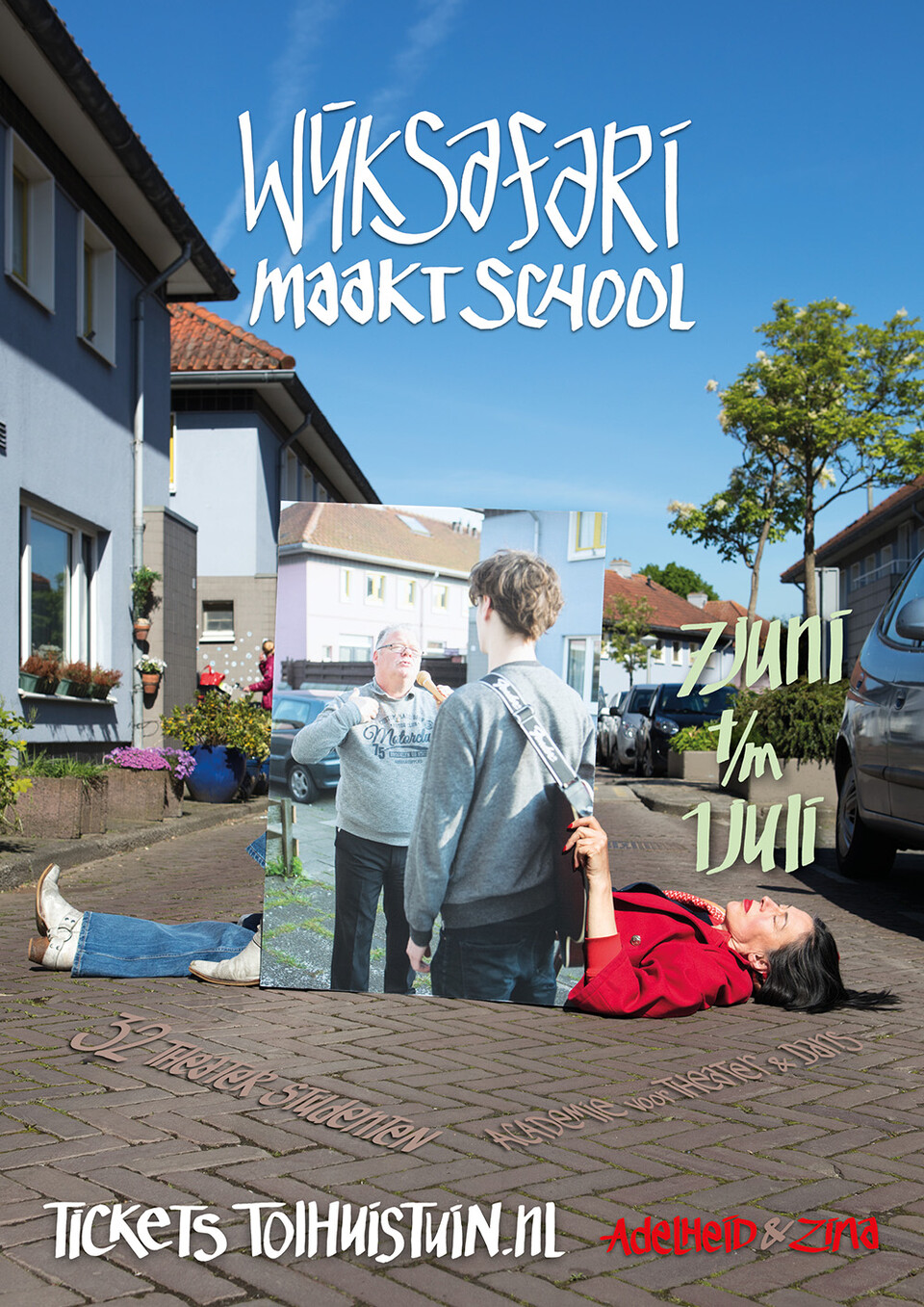 Dutch actrice / director and artist Adelheid Roosen (nearly 30 years teacher at the Theatre & Dance Academy Amsterdam) produces a theatre project called The Wijksafari (neighborhood safari). After a few editions Adelheid introduces the Wijksafari in the North of Amsterdam this year. 10 of Adelheid's students are invited to live several weeks with inhabitants (the certain adoption parents) of the Banne and Floradorp. They will all plan and write a play and perform these in the homes of the inhabitants. Audience tours will be held during the summer and 20 odd people are invited in the houses per scene. They will travel per bike to a few houses a day and get back together at a meeting point.