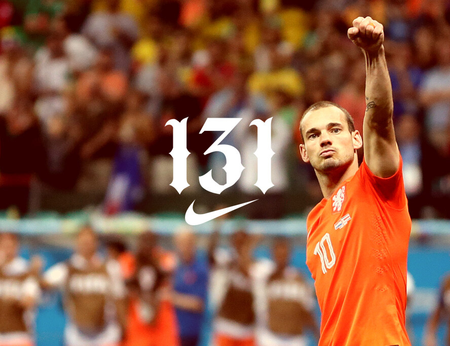 Celebrating Wesley's record of 131 caps for Oranje, we made him a short clip of his past 14 years of football in this color jersey, we added the 131 tattoo to his boots and gave him a quick shout out online. Its nice that 131 but we do expect him to add a few more. Dickie knows.