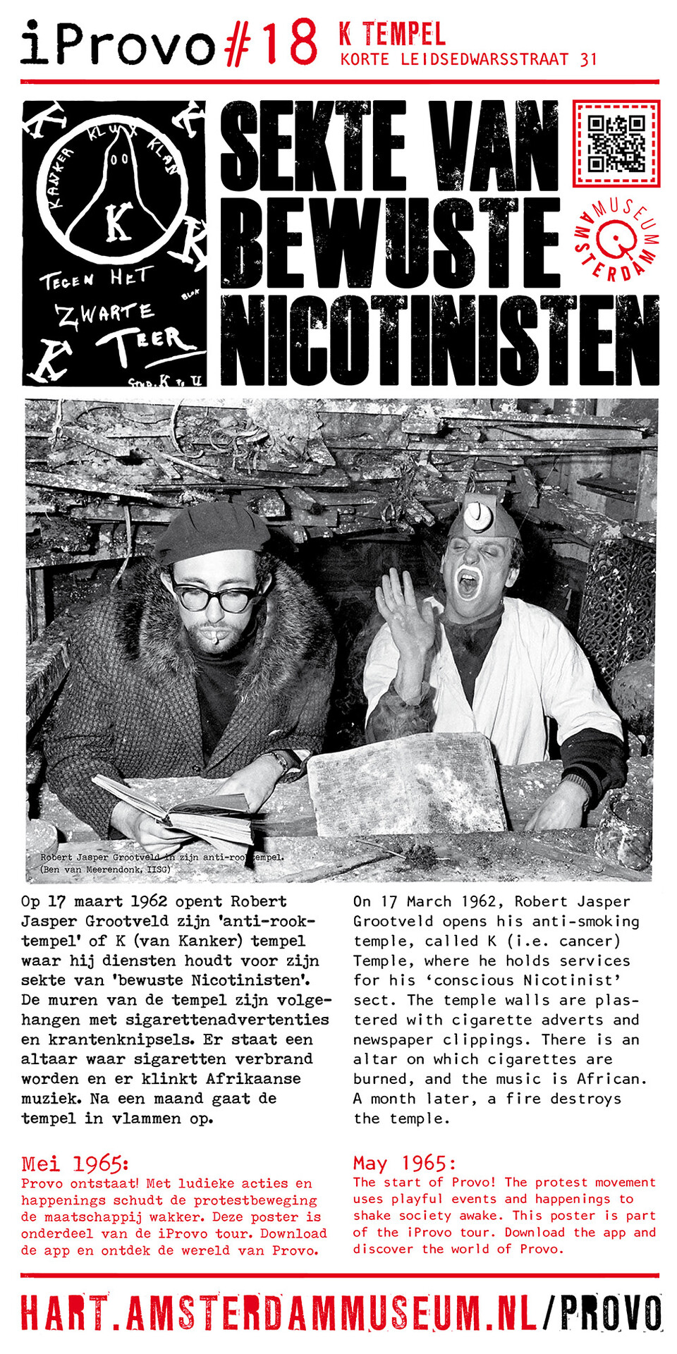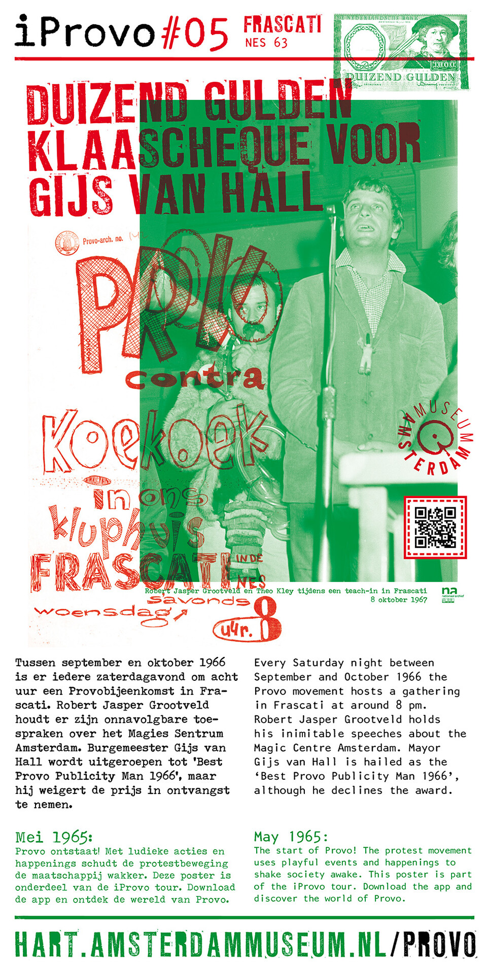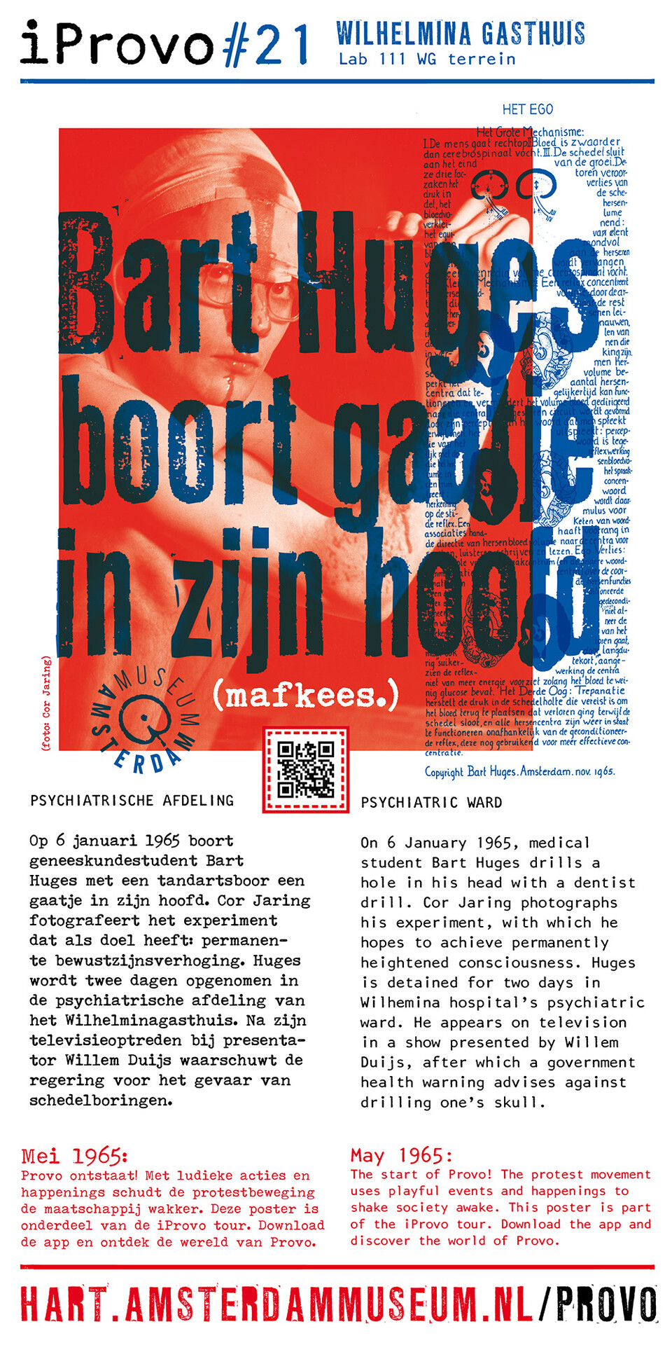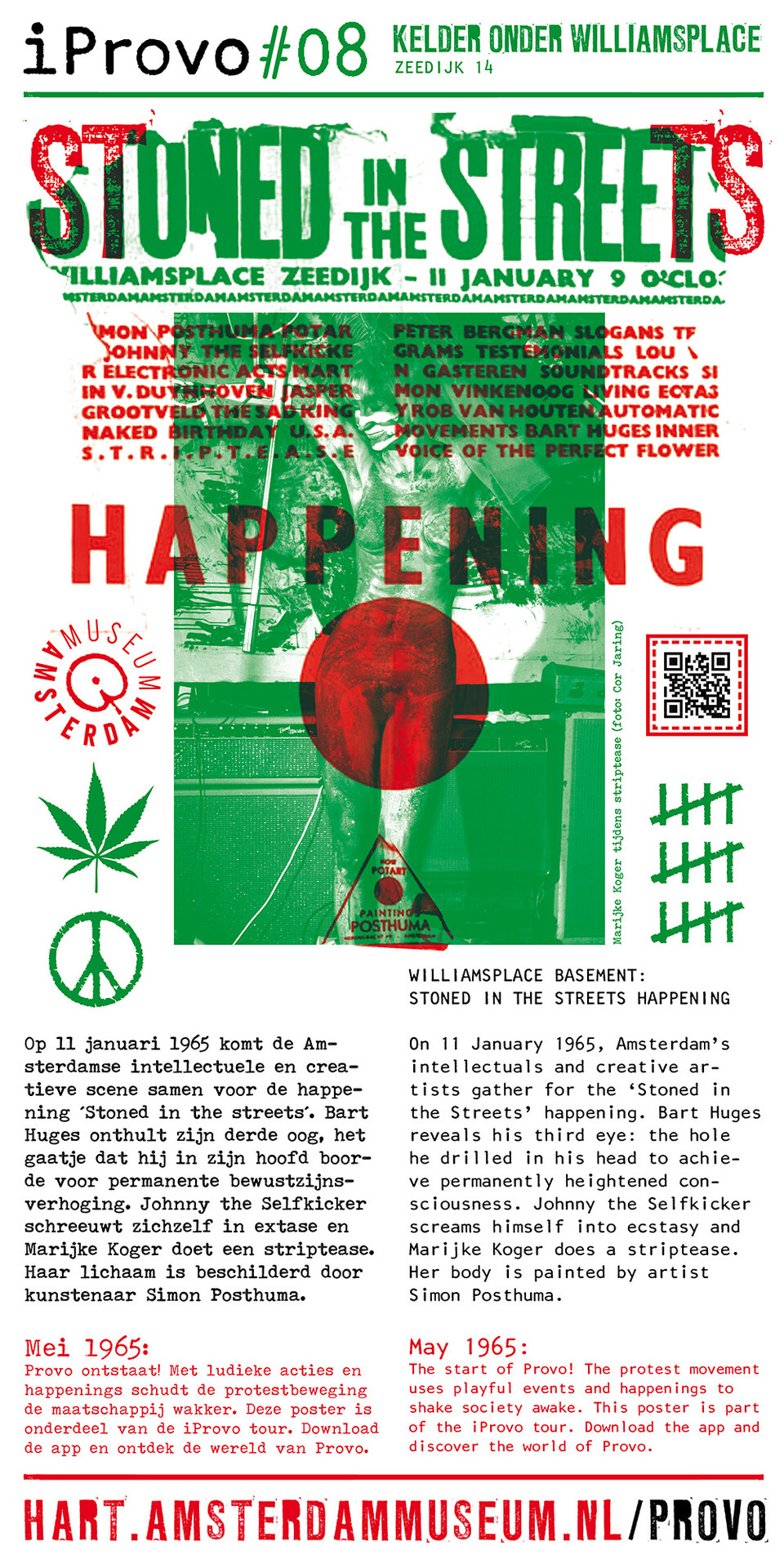 Celebrating the 50th anniversary of Provo the Amsterdam Museum made a bike tour through Amsterdam with 30 essential spots to learn more about the Provo movement. These posters were the tangible pieces and marks of the tour and with the QR code on the poster you were able to receive more information via the iProvo app.