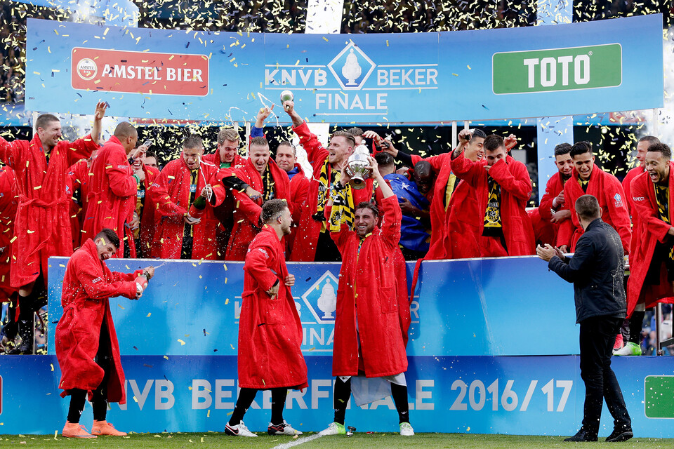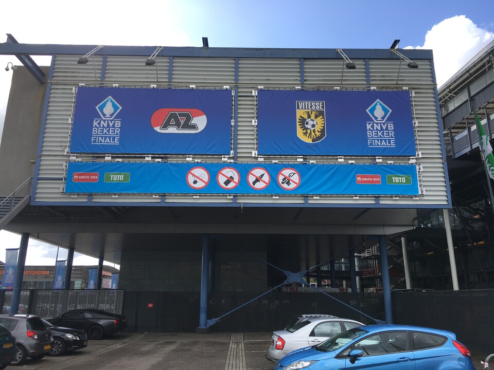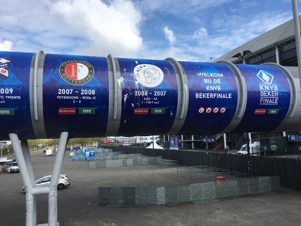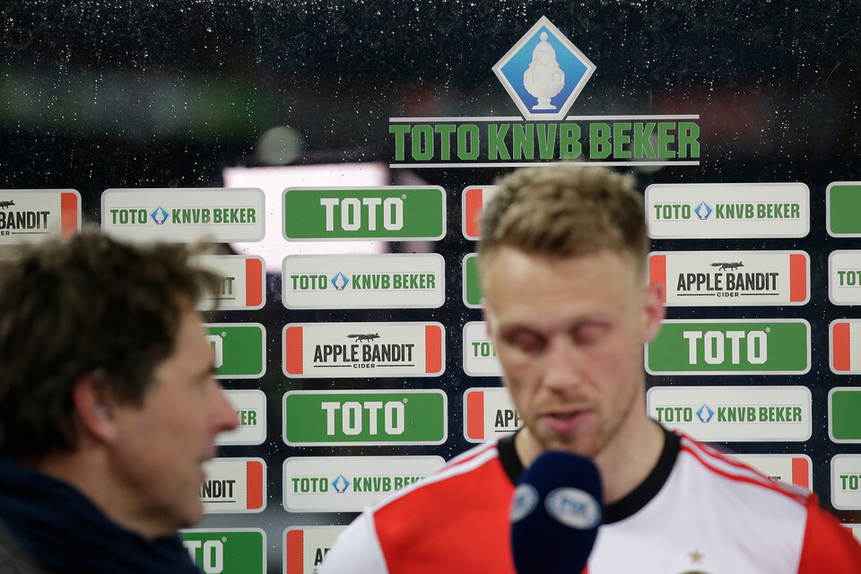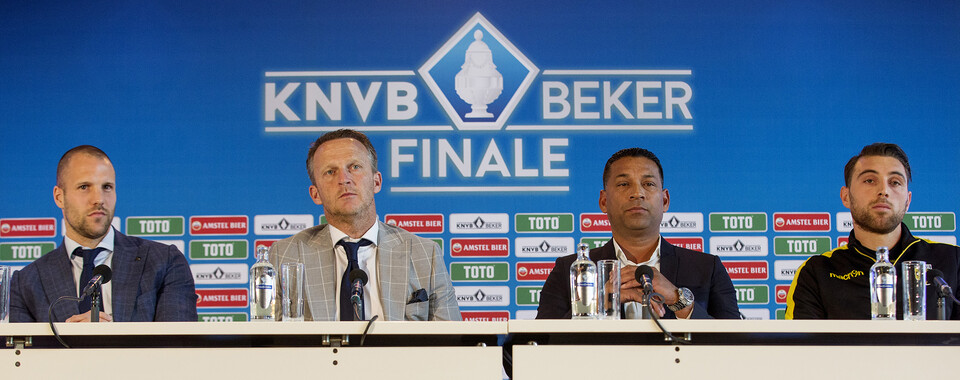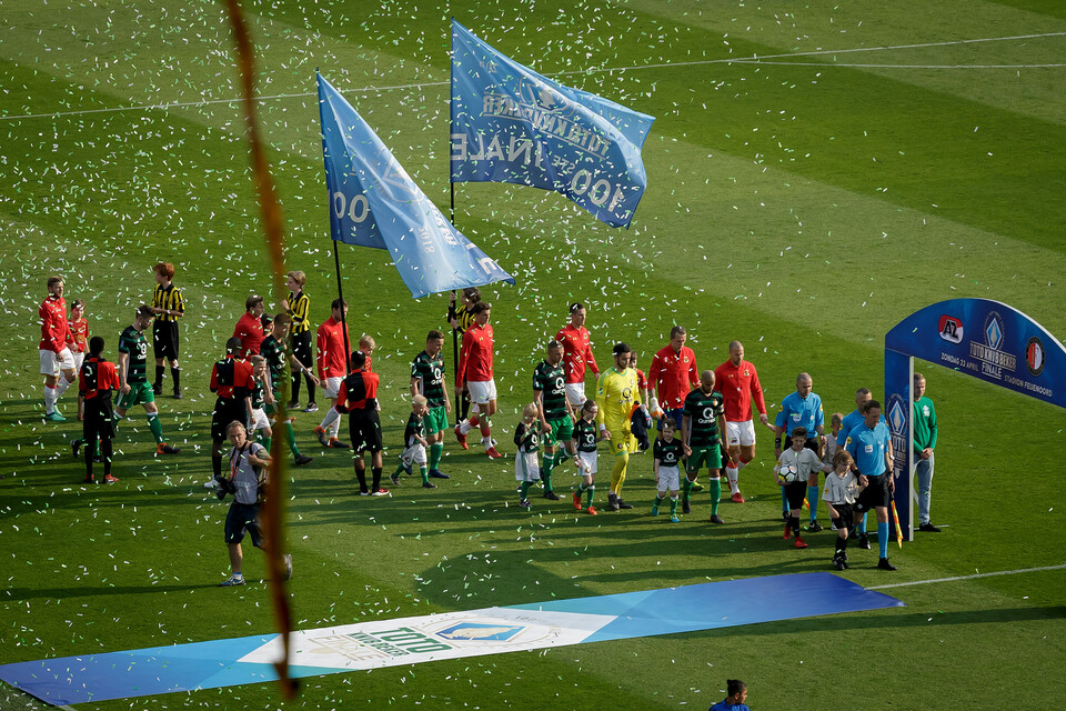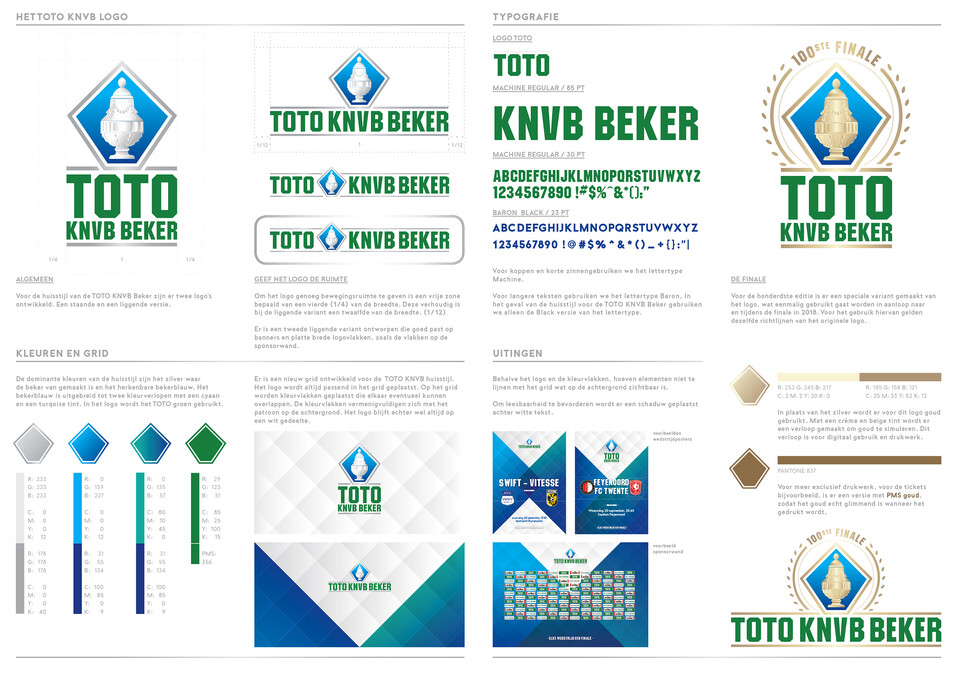 The design lasted for one season as in 2018 a new sponsor was added to the name. During the 100 years jubilee season 2017-2018 another identity was introduced as the tournament was called the TOTO KNVB Beker. The anniversary was celebrated with a golden cup. We changed all the backdrops and introduced a pattern print to the design. This all meant that the project lasted for two years before the final identity was up and running. Starting off with the clean blue and silver, transferring into the TOTO initiation of green into the design, continuing with a golden cup during the anniversary and finally working with a somewhat compromising blue, silver, green at this point.