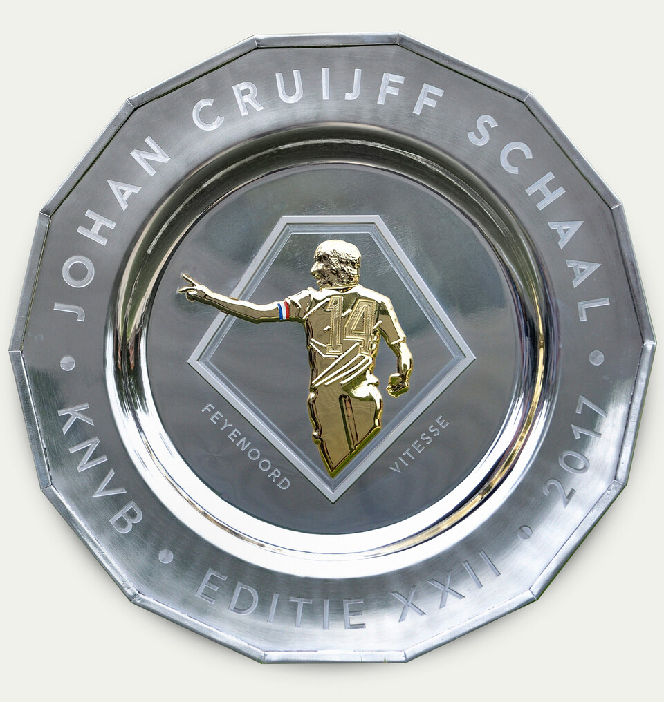 With the new approach of the Johan Cruijff Schaal starting this season – playing at the league champion's stadium – the opportunity for a new identity was created. The Johan Cruijff Foundation became a leading partner and with that the ability to use Johan's portrait as a main visual. Next to the graphic identity we had the great honor to make the award itself as well. In collaboration with Het Oude Ambacht the tin and brass platter was created right in time for the 22nd edition between Feyenoord and Vitesse.